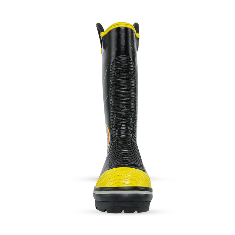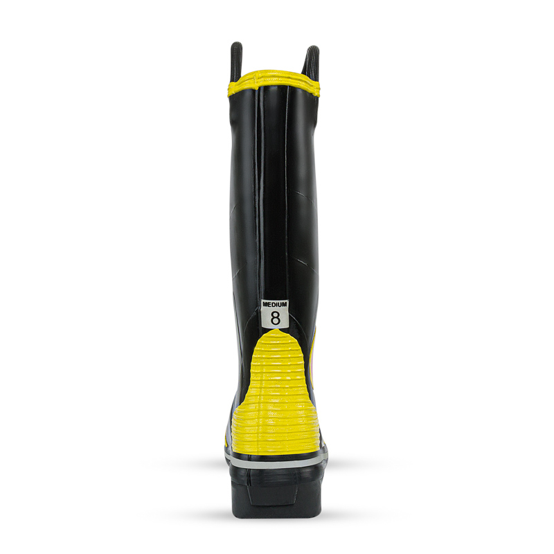 Botas para bomberos de seguridad fabricadas en caucho vulcanizado. Tienen puntera de acero que cumple con la resistencia al impacto de 101,7J y resiste una fuerza de compresión de 11.121N o 2.500lbf según la norma ASTM F2413-18. La entresuela de acero resiste una fuerza de punción mínima de 1.200N o 270lbf, según norma ASTM F2413-18. Estas botas para bomberos están certificadas por Underwriter Laboratories (UL) bajo los requerimientos de las normas NFPA 1971-18, NFPA 1992-18, ASTM F2413-18 y CSA Z195-14. Su suela de caucho vulcanizado es retardante de flama, resiste la abrasión y tiene labrado profundo para mejor agarre y facilidad en remoción de residuos. Tiene forro interno en Filtrex (aislante térmico) hasta la altura de 13″» y dependiendo de la referencia. Además, cuenta con espuma interna de poliuretano recubierta de caucho resistente a la flama. Trae agarraderas de caucho vulcanizado para agilizar la postura de la bota de bombero y cinta reflectiva en el contorno de la suela para incrementar visibilidad en espacios de baja luminosidad.