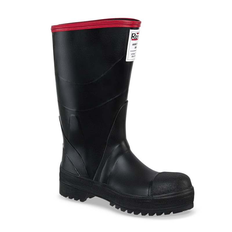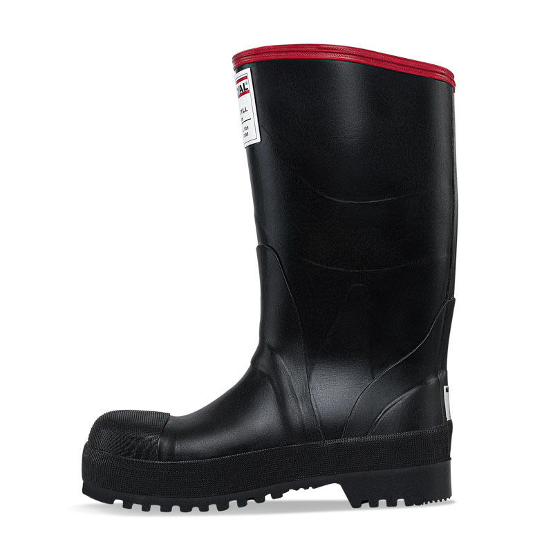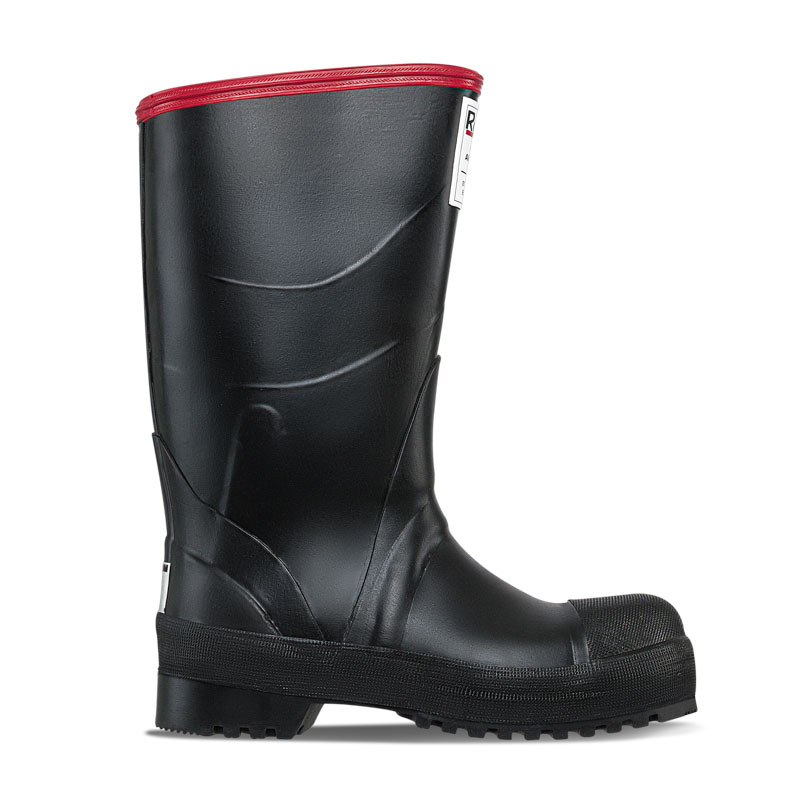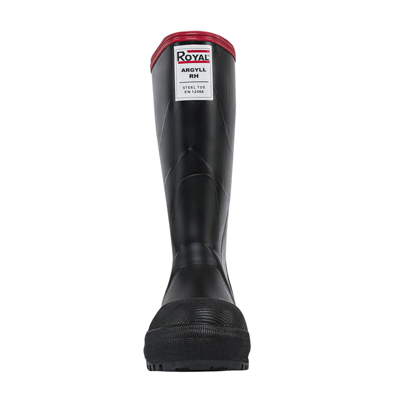 Las botas Royal Argyll RH STM S.M son botas de seguridad 100% impermeables. Están fabricadas en caucho vulcanizado en autoclave de manera manual, pieza por pieza. Así mismo, son botas de caucho para uso industrial, fabricadas bajo los requerimientos de la norma NTC 1741. La caña y capellada son resistentes al derrame de hidrocarburos y derivados del petróleo. Su suela en caucho moldeado, antideslizante, resistente a la abrasión y a los hidrocarburos. Cuenta con una entresuela en acero, en cumplimiento con la norma EN 12568 y que resiste una fuerza de punción mínima de 1.100N o 247lbf. Tiene un forro interno 100 % en algodón y una plantilla confort elaborada en poliuretano (PU) extraíble, con surcos de ventilación que mantienen el pie fresco y facilitan la limpieza de la bota y la plantilla. Tiene una plantilla con alto grado de memoria que retorna a su forma original. Es de caña negra con suela negra y distintivos rojos.