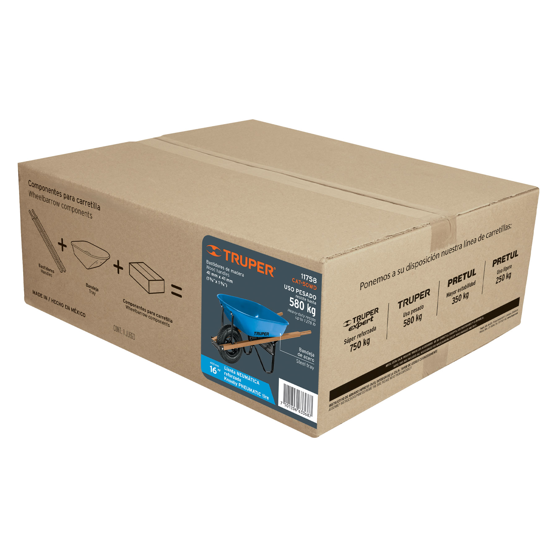 • Llanta neumática reforzada con rin de 3 aspas,