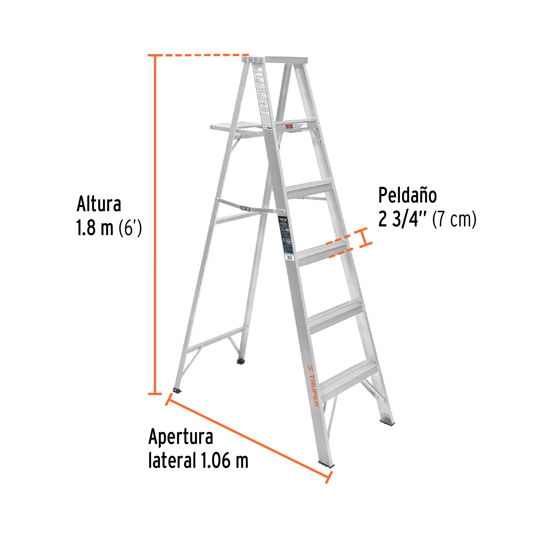 • Peldaños antiderrapantes 2 3/4″ (7 cm)